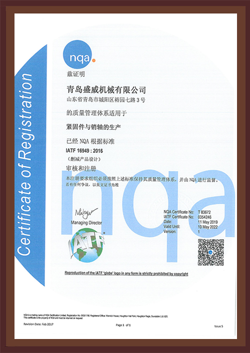 公司全體員工始終遵循"一流品質(zhì)服務(wù),持續(xù)改進(jìn)管理,滿足客戶需求"的質(zhì)量方針,和“鑄精品螺栓、創(chuàng)用戶首選”的經(jīng)營(yíng)理念。